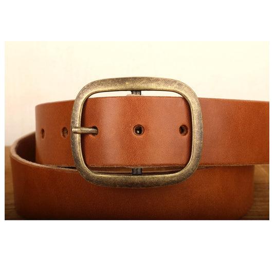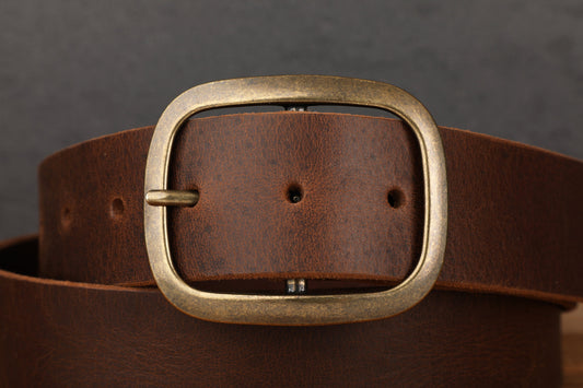 Chocolate Dark Brown Full Grain Leather Belt with Antique Brass Buckle