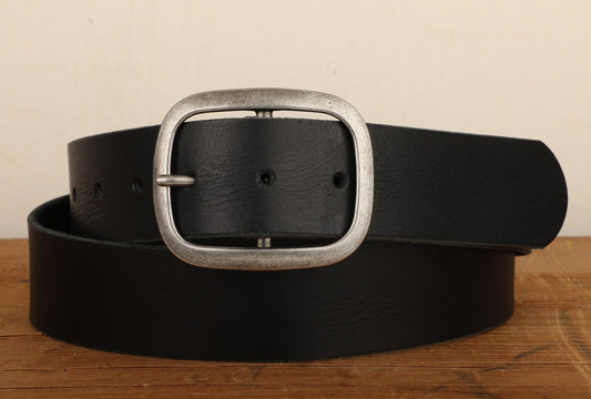 Black Leather Belt with Gold Tone Antique Brass Belt Buckle