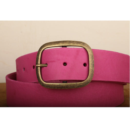 Distressed Red Leather Belt with Antique Brass or Silver Buckle